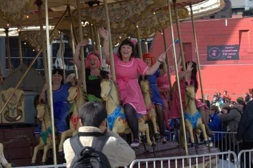Tap Dancing March o'Glamour through the Southbank district. Tap Dancing at the Queensbridge Square Carousel. On to Free Tap Performance on The Big Red Stage