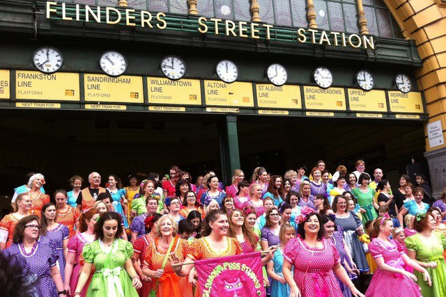 March O'Glamour from AAMI Park across Morell Bridge. Shim Sham Shimmy on Morell Bridge. On to a Free Tap Performance in The Royal Botanical Gardens.