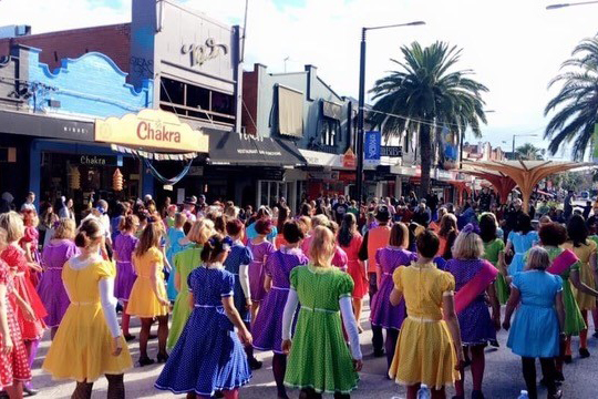 Shim Sham Shimmy at Luna Park. March o'Glamour down Acland street. Free Tap Performance to launch the newly created Acland Plaza.